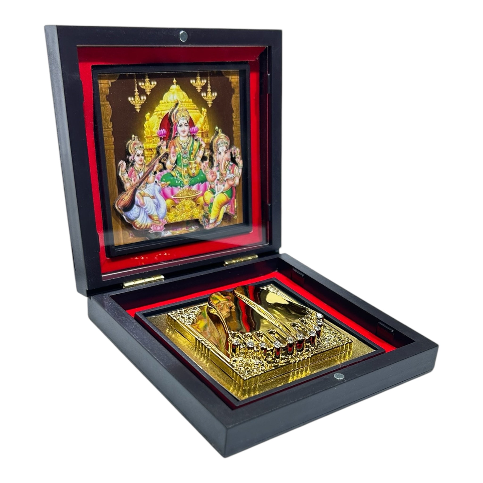 Sri Lakshmi Ganesh Saraswathi Gold Plated Charan Box Corporate Gift 11 x 11 cm - LGS memorable Presentation for religious festivals