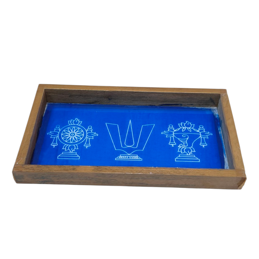 Rectangular Wooden Frame Thenkalai Thirumankappu Shankh & Chakra design Rangoli Stencil – size 5 inches தென்கலை நாமம் சங்கு சக்கரம் கோலம்