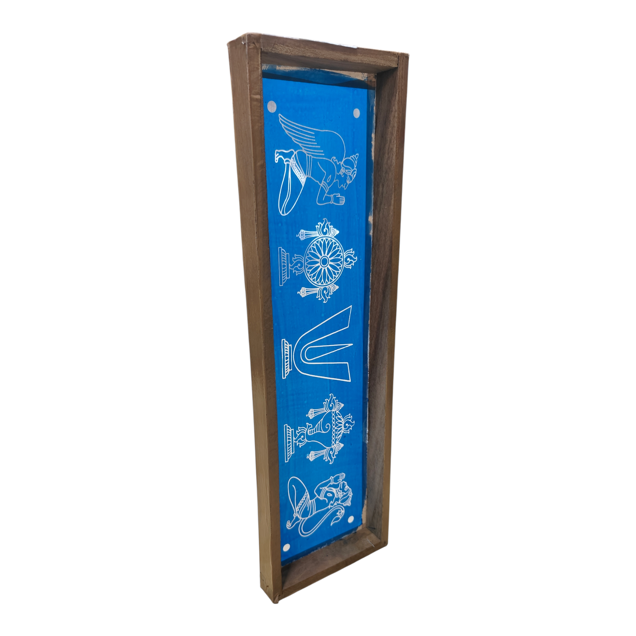 Rectangular Wooden Frame Vadakalai Thirumankappu Shankh & Chakra design Rangoli Stencil – size 17 × 5 inches, வடகலை நாமம் சங்கு சக்கரம் கோலம்