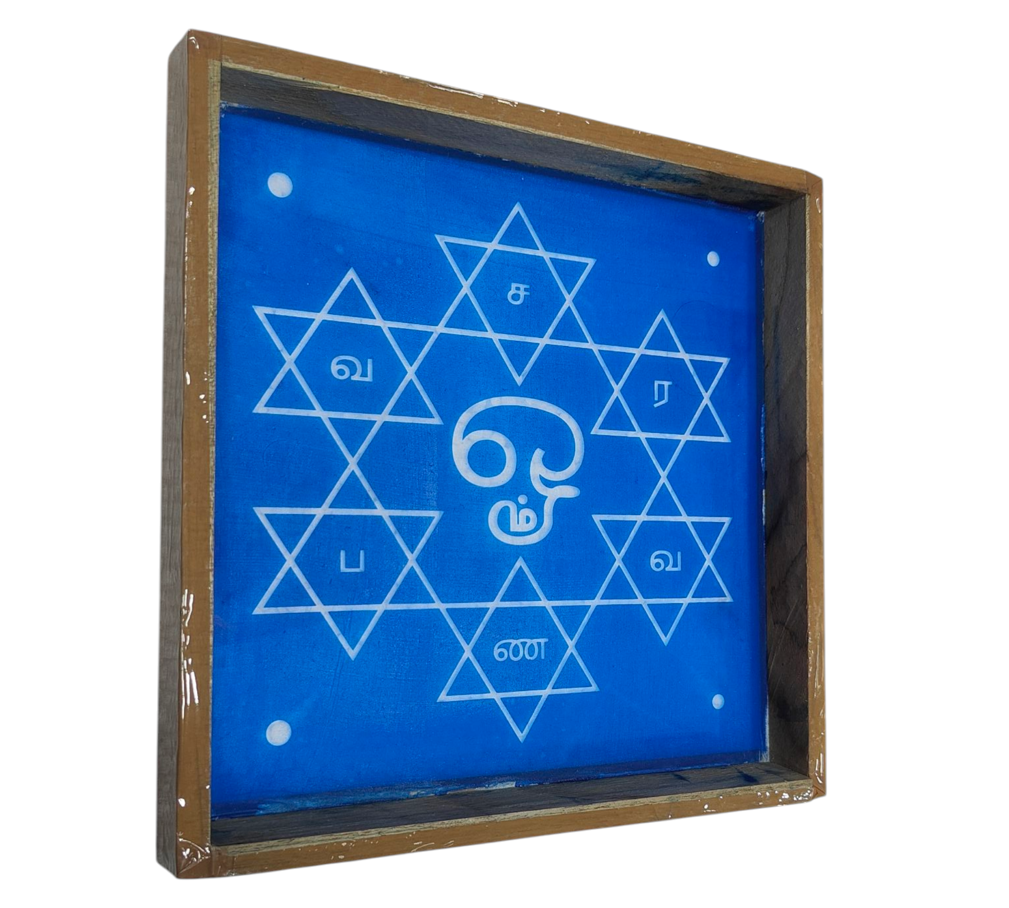 Square Wooden Frame Ohm Saravana Bhava Rangoli/Kolam design reusable Stencil – size 7 inches ஓம் சரவண பவ கோலம்