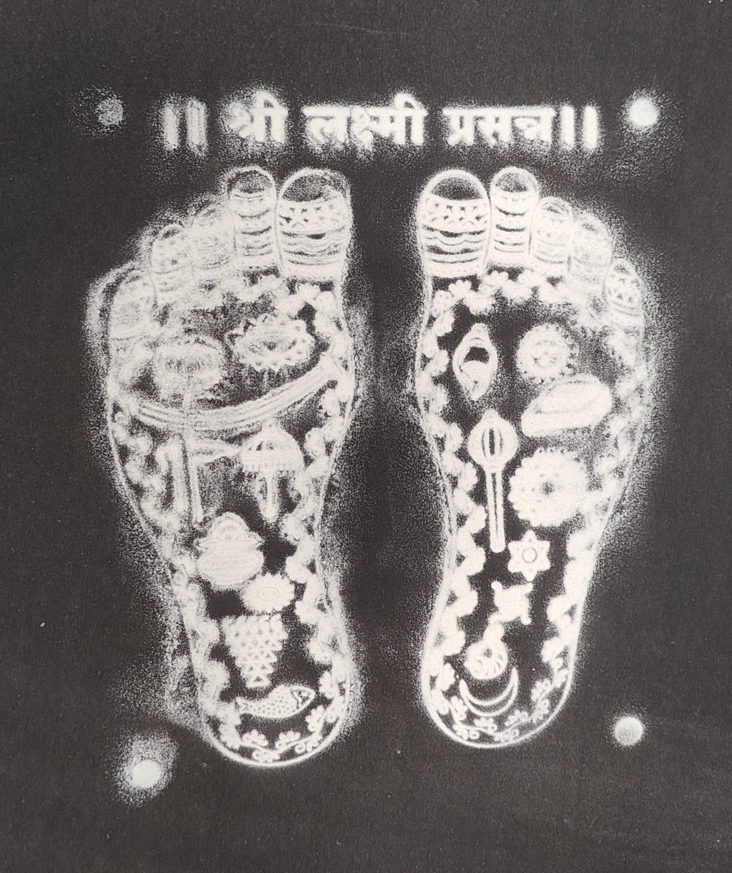 Square Wooden Frame Sri Lakshmi Matha Holy Charan Padhukas design Rangoli/Kolam reusable Stencil – size 7 inches ஸ்ரீ மகாலட்சுமி திருவடி கோலம்