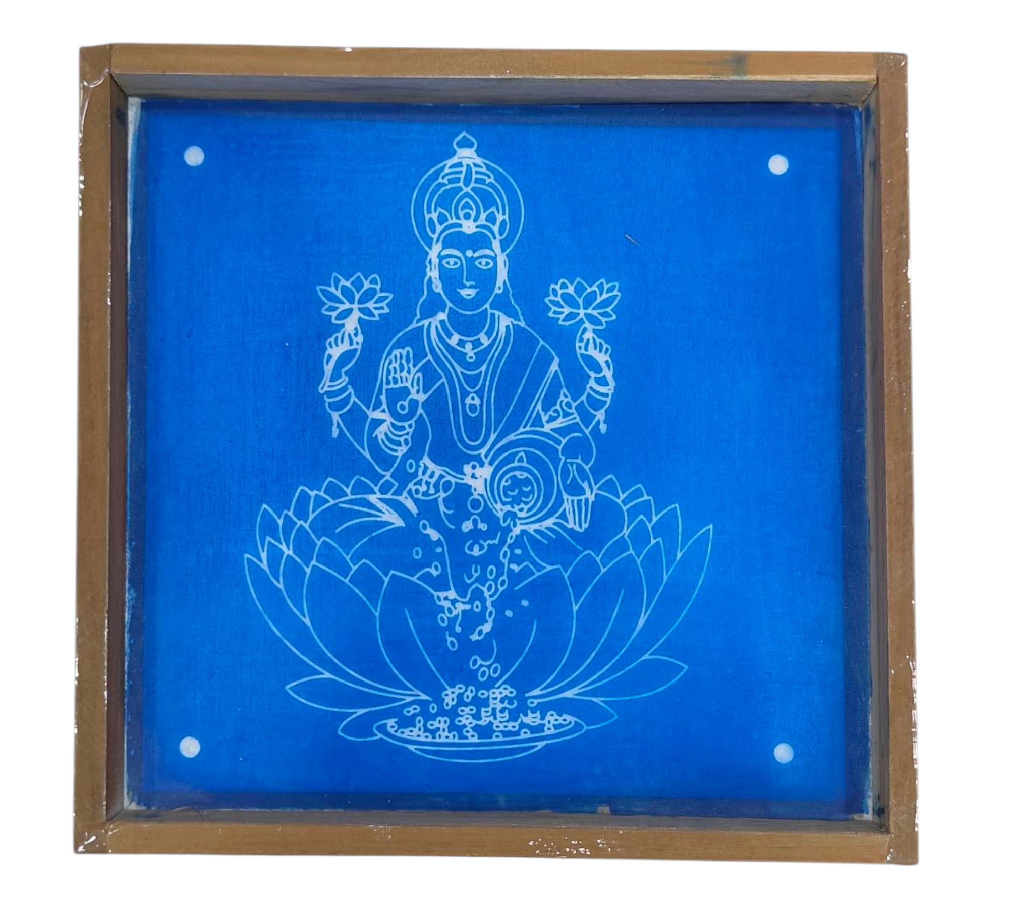 Square Wooden Frame Sri Mahalakshmi on Lotus Pedestal Rangoli/Kolam design reusable Stencil – size 7 inches