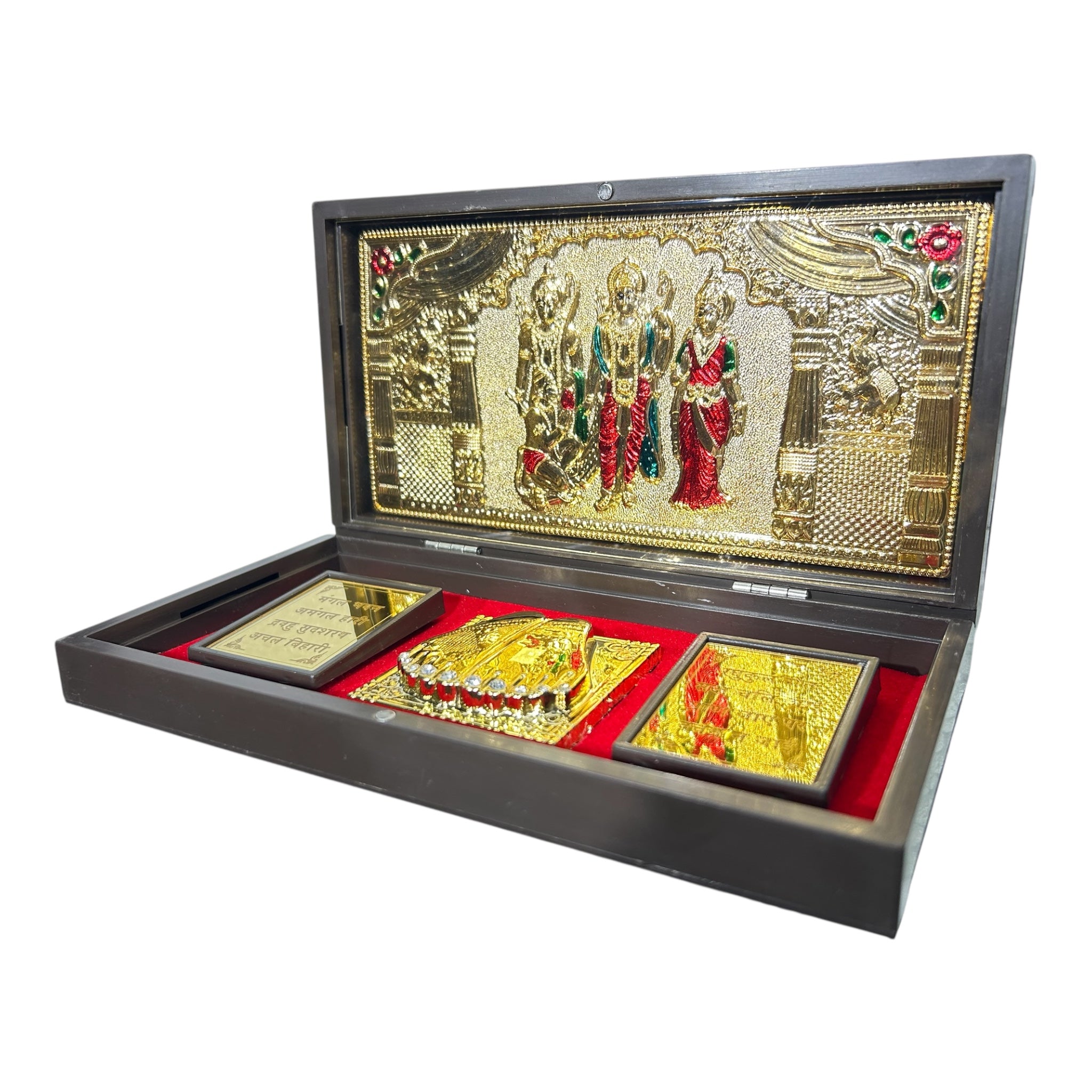 Sri Ram Darbar Red & Gold Foil Charan Padhukas Box size 21 x 11 cms - for corporate gifting & Pooja décor