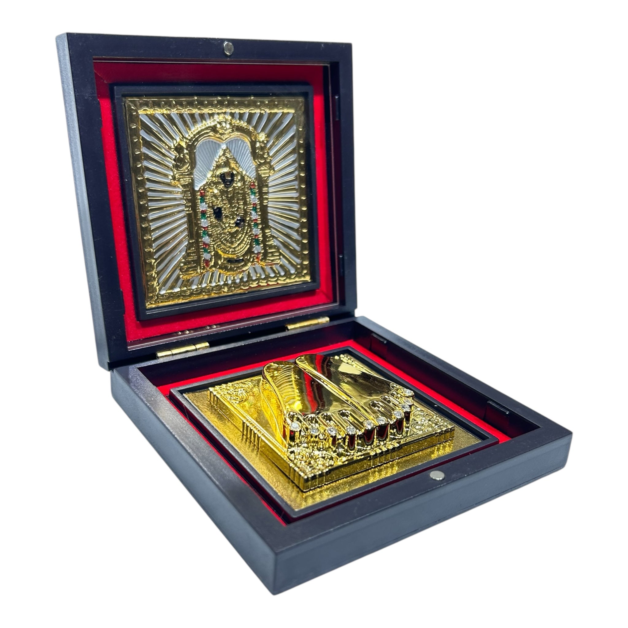 Srinivasar- Tirupati Balaji Gold Plated Charan Box Corporate Gift 11 x 11 cms - velvet-lined divine presence or festive decoration