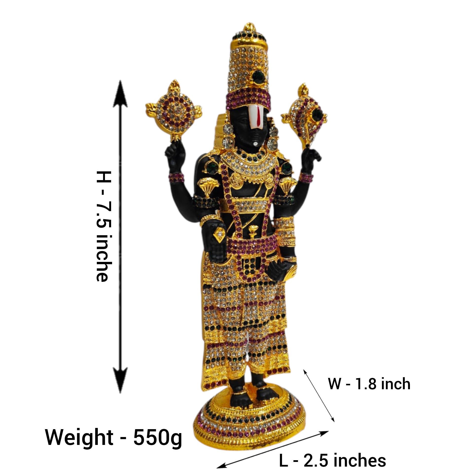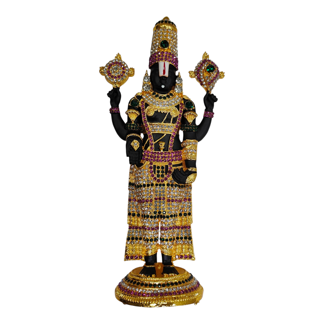 Stone Studded Multicolour Tirupati Srinivasa Perumal Idol 7.5 Inch – Decorative Balaji Murti for Home Puja & Gift